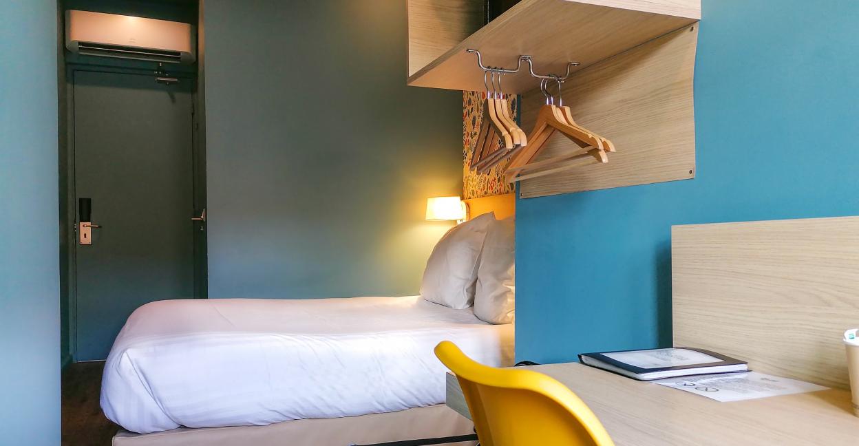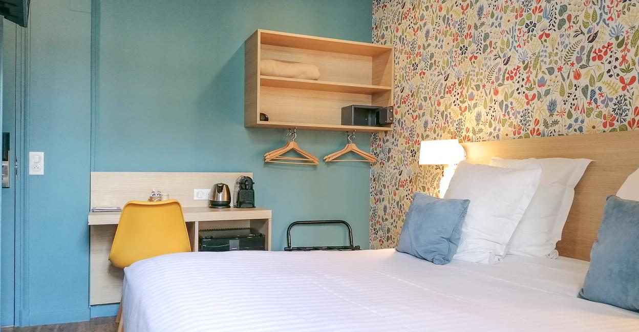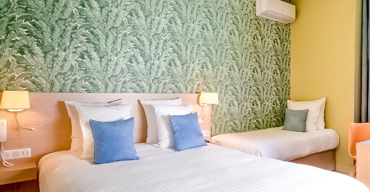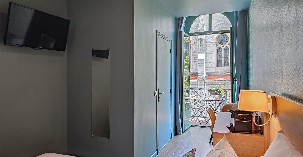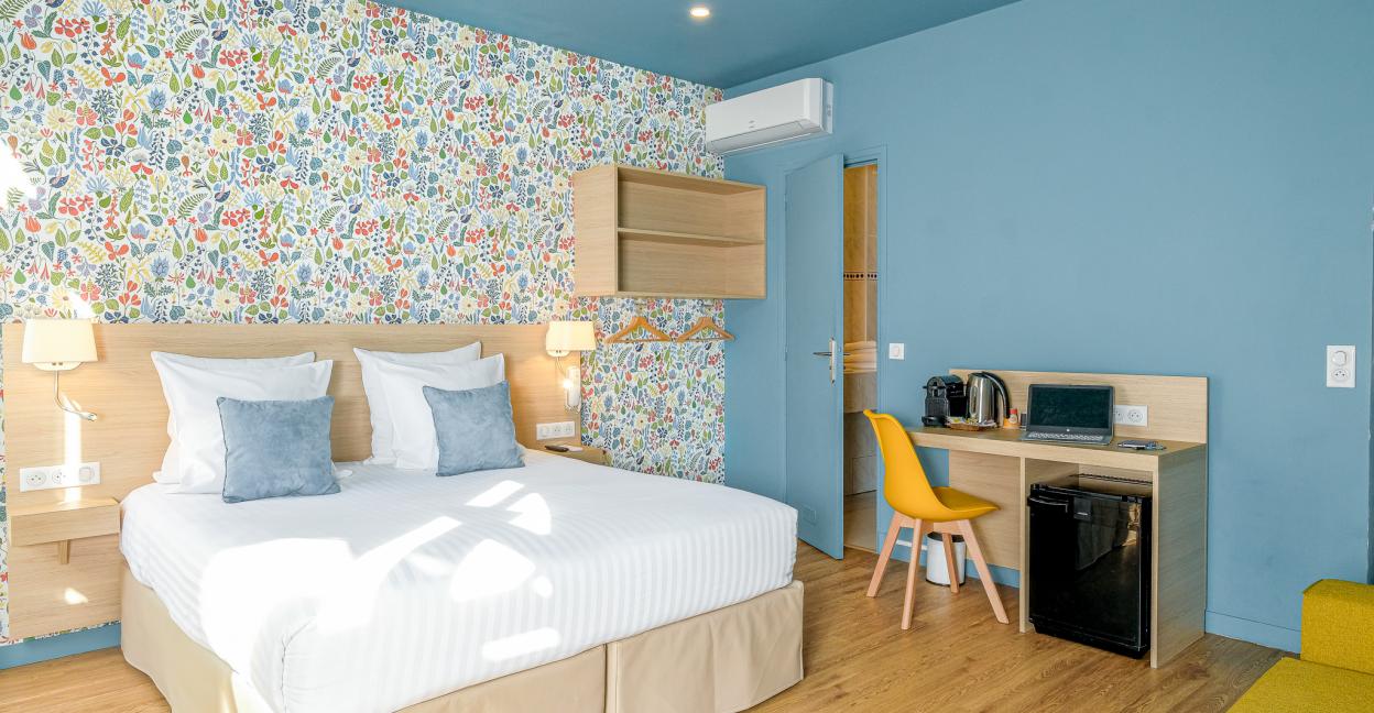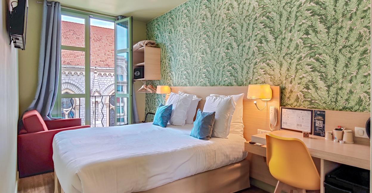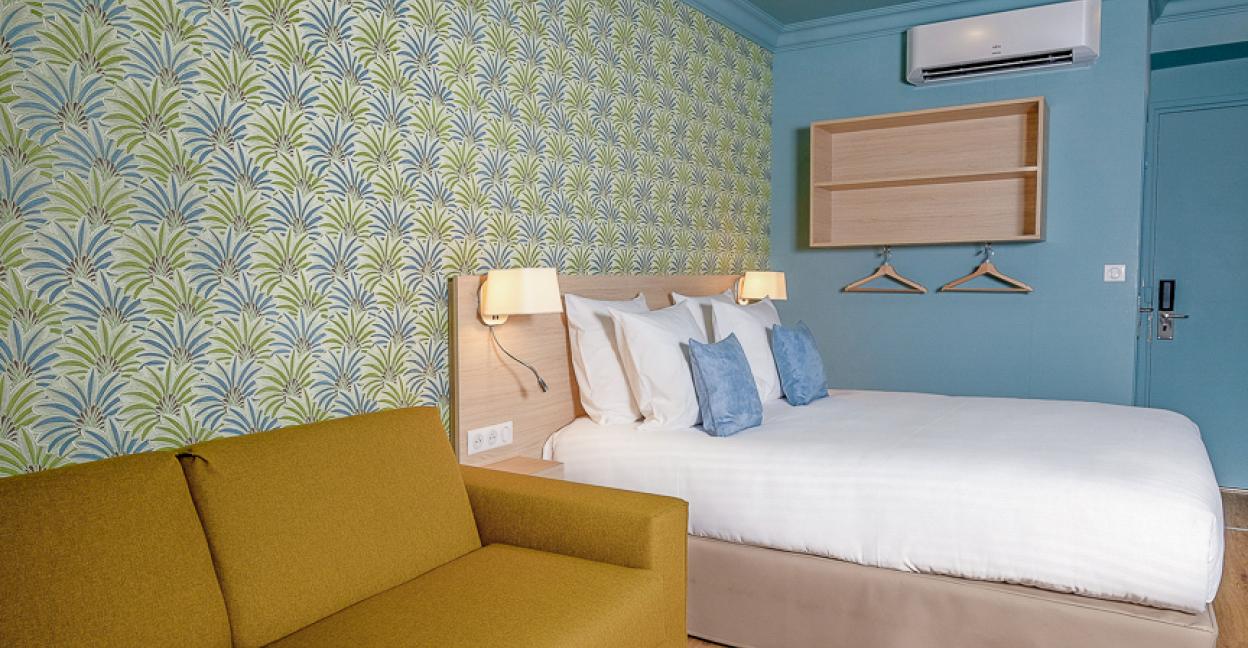 Small room of 9 sqm (and bathroom of 2 sqm and small shower 70x70) with an excellent bed of 150x190, bed cover and 4 pillows. A small space which will be the ideal base to sleep well and then go out to discover the city of Nice and the French Riviera with an excellent quality/price ratio!