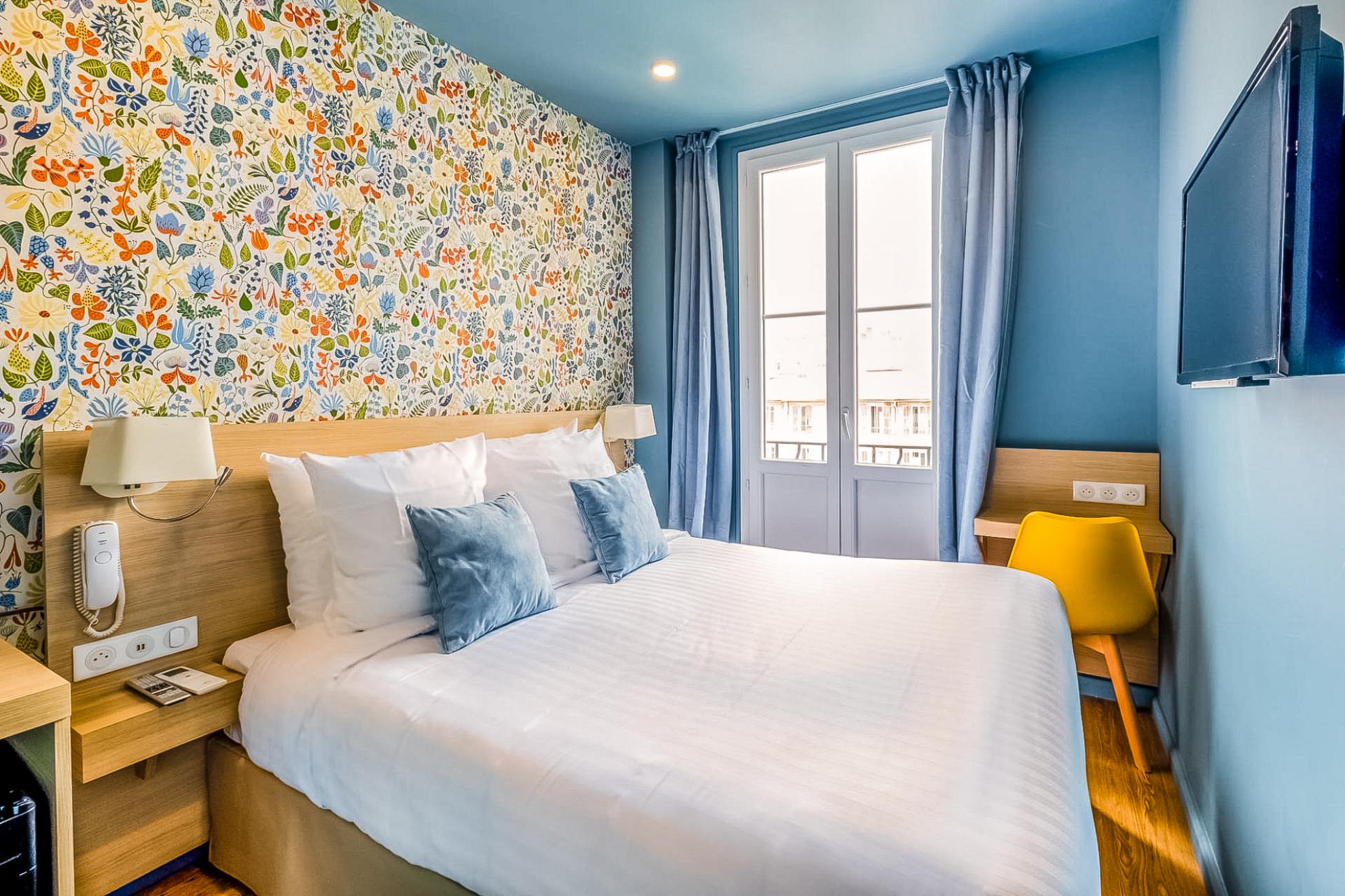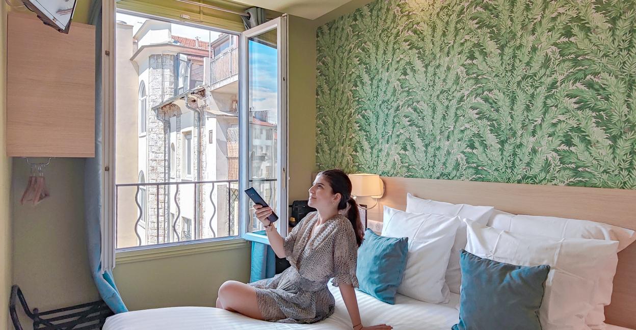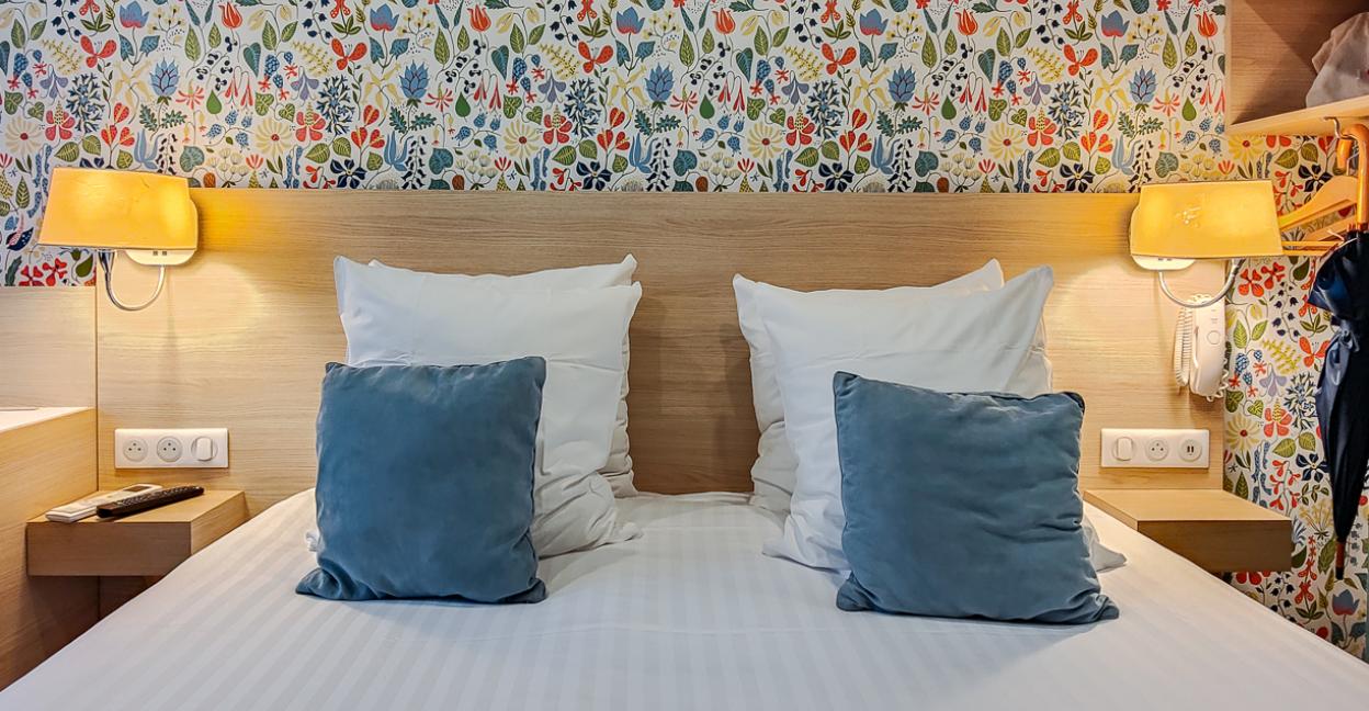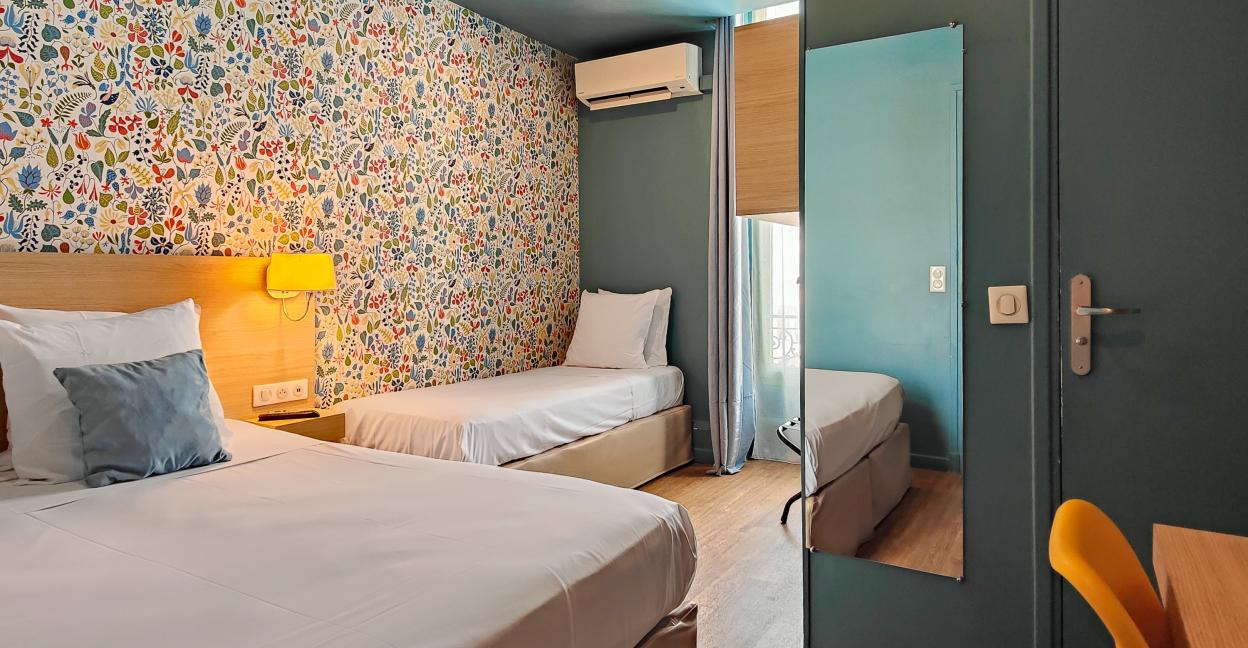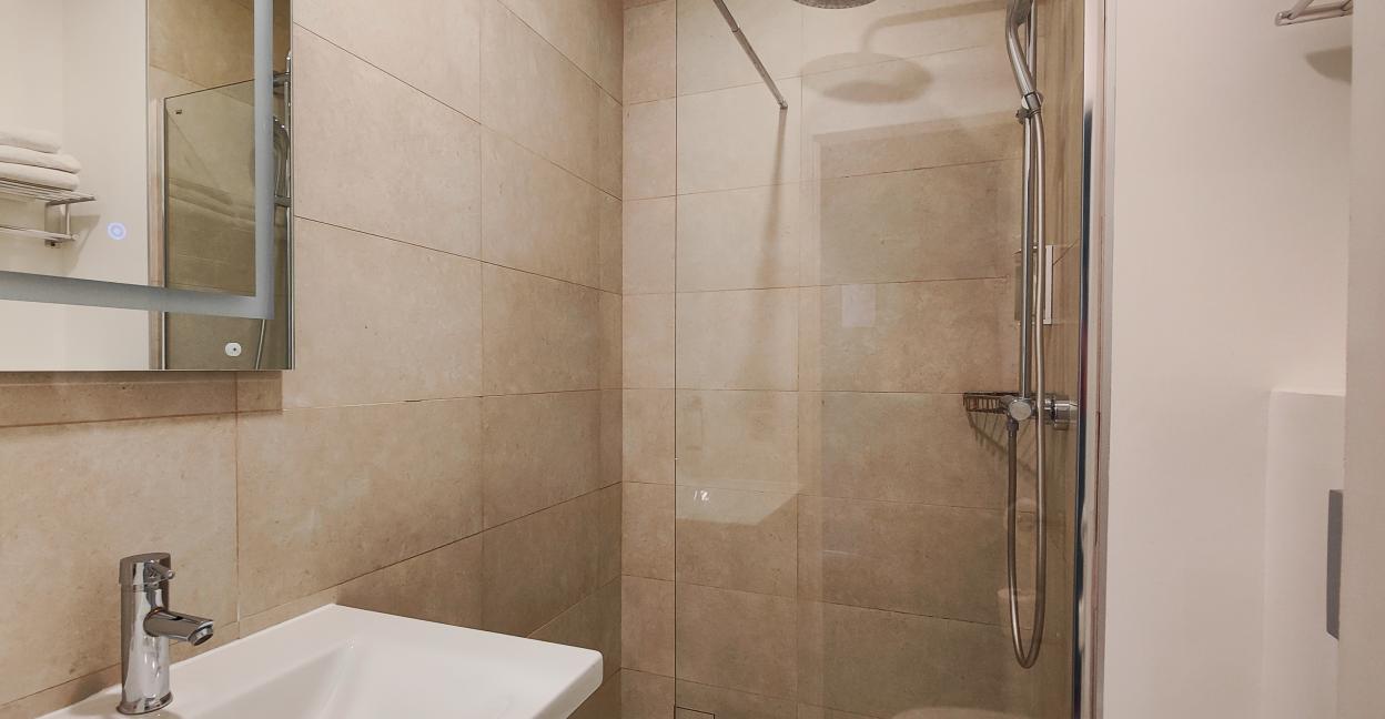 Petite chambre de 9 m² (et salle de bains de 2 m² et petite douche 70x70) avec un excellent lit de 150x190, couette et 4 oreillers. Un petit espace qui sera la base idéale pour bien dormir puis sortir découvrir la ville de Nice et la Côte d’Azur avec un excellent rapport qualité/prix !