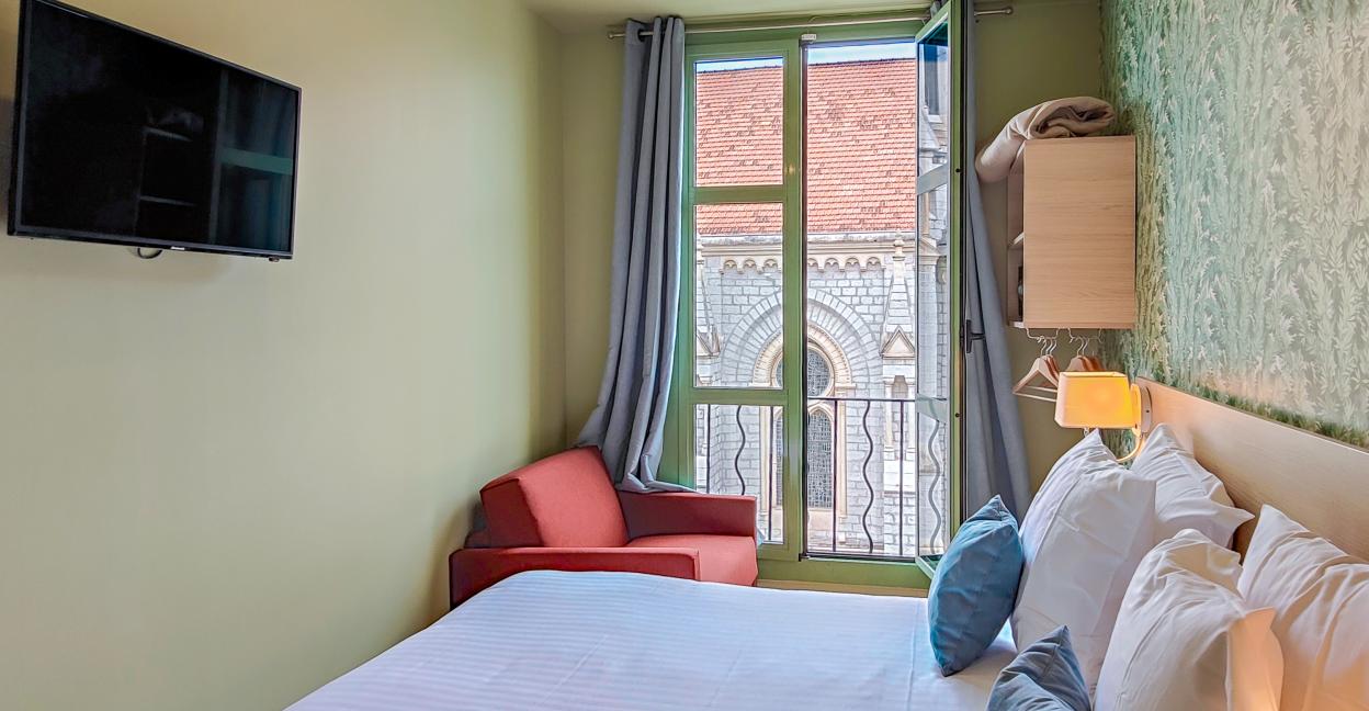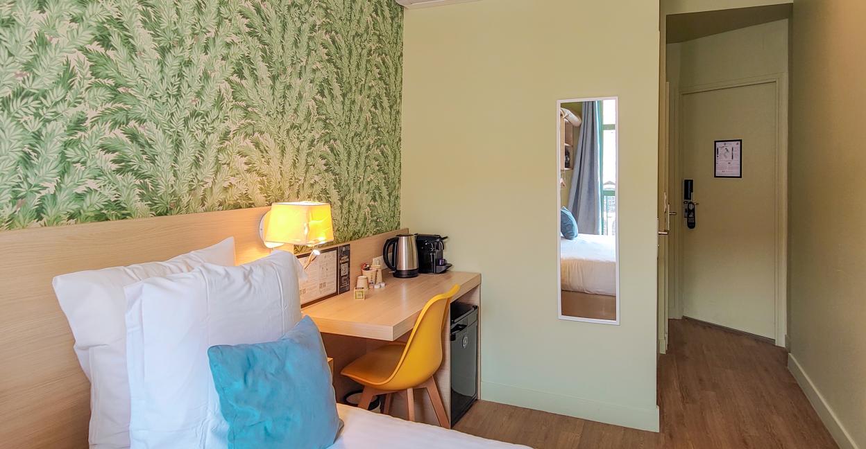 Vue sur cour | Nespresso | Frigo | Bouilloire | coffre-fort | Lit 150x200